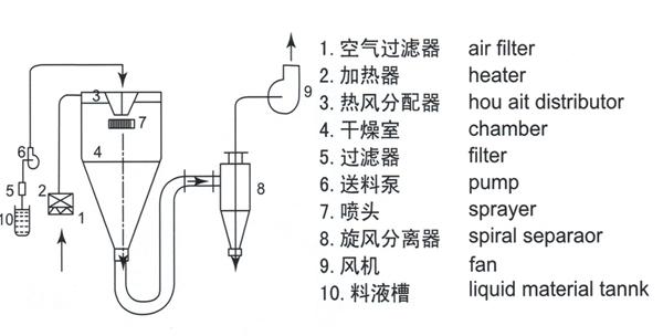 3.LPG系列高速離心噴霧干燥機生產(chǎn)過程簡化,操作控制方便。對于濕含量40—60%(特殊物科可達90%)的液體能一次干燥成粉粒產(chǎn)品,干燥后不需粉碎和篩選。減少生產(chǎn)工序,提高產(chǎn)品純度、對產(chǎn)品粒徑、松密度、水份在一定范圍內(nèi)可通過改變操作條件進行調(diào)整控制和管理都很方便。