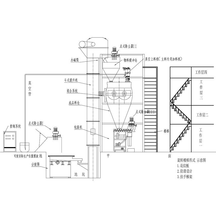 8、本系統(tǒng)配備完善的除塵設(shè)備,投料和包裝粉塵非常少,改善工人的勞動(dòng)環(huán)境,提高工人的生產(chǎn)效率。