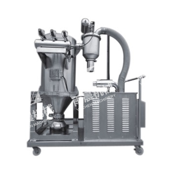 本機(jī)器廣泛吸收國外同類產(chǎn)品的基礎(chǔ)上開發(fā)研制的新產(chǎn)品,目前它是國內(nèi)先進(jìn)、理想、完善的粉狀料、粒狀料、粉粒料混合料的真空加料設(shè)備。真空加料機(jī)能自動的將各種物料輸送到包裝機(jī)、壓片機(jī)、膠囊填充機(jī)、注塑機(jī)、粉碎機(jī)等料斗中,也能直接把被混合的物料輸送到混合機(jī)(V型混合機(jī)、二維混合機(jī)、三維混合機(jī)等)中,減輕了人工勞動強(qiáng)度,解決了加料時(shí)粉塵外溢等情況問題,是制藥廠,食品廠通過GMP認(rèn)證,促進(jìn)清潔,文明生產(chǎn)的設(shè)備。